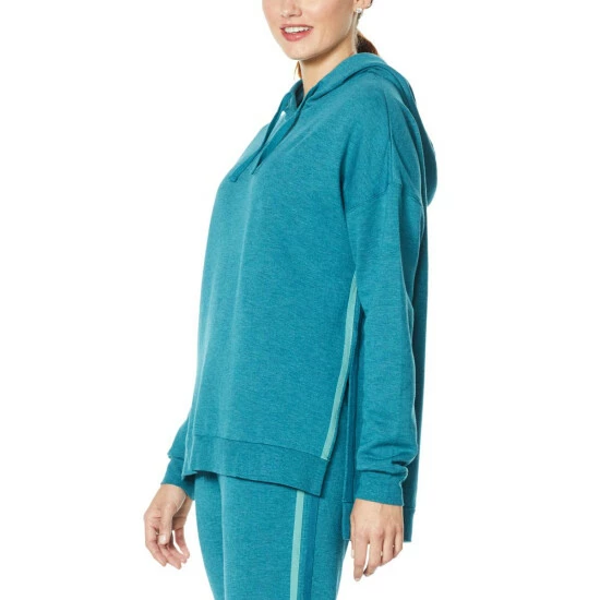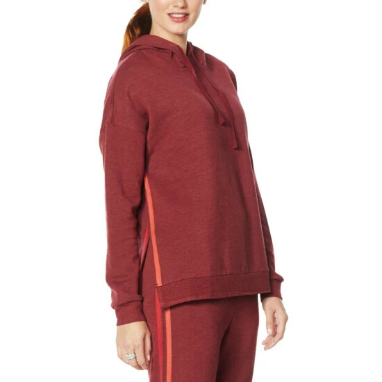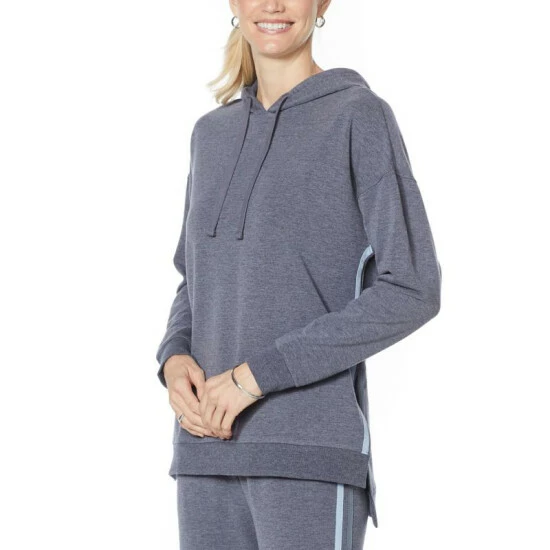 Sumptuously soft French terry knit with a hooded collarand striped trimgives this classic sweatshirt an extraordinary edge for days, nights and weekends spent in stylish comfort.
