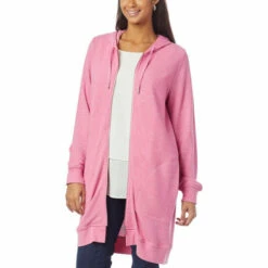 Casual day? Don’t get caught looking unkempt. Thiselongated, French terry knithoodieis so softand stretchy, it keeps you looking cute and feeling comfyno matter where the day takes you (or who you run into).