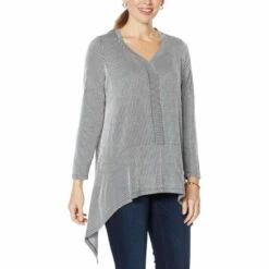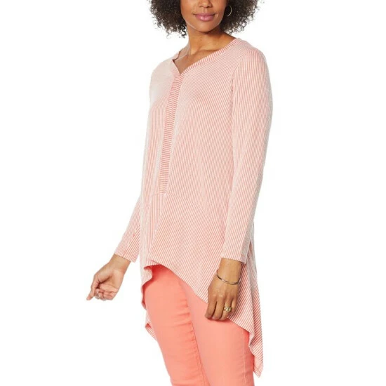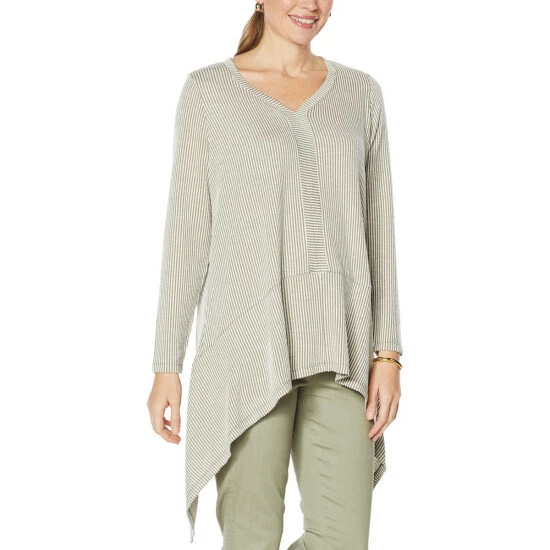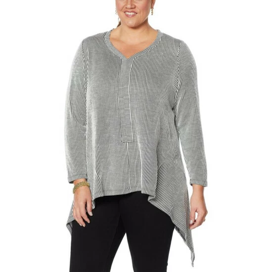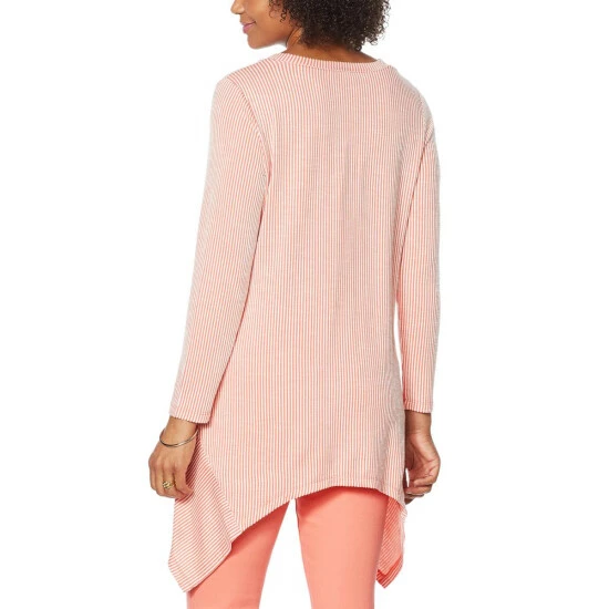 Stripes bring visual texture to this brushed knit top that’s soft and swingy and loose-fitting. Love it over leggings!