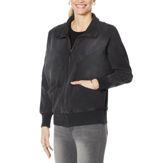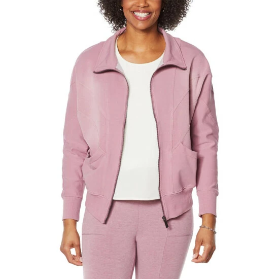 DG2 by Diane Gilman “DG Downtime” Knit Flex Zip-Up Track Jacket