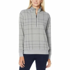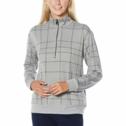 | Neckline: | Mock turtleneck with quarter-zip placket |