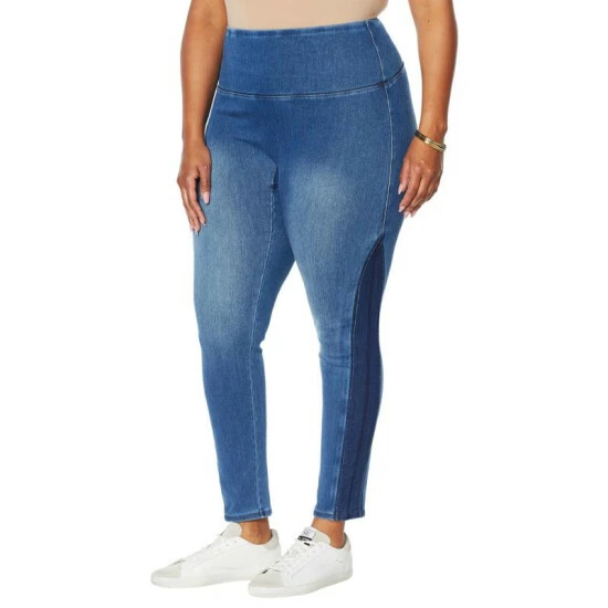 Get a stylish assist when you pull on this stretch twill legging. Compression knit lines the wide waistband, helping to comfortably hold things in check.