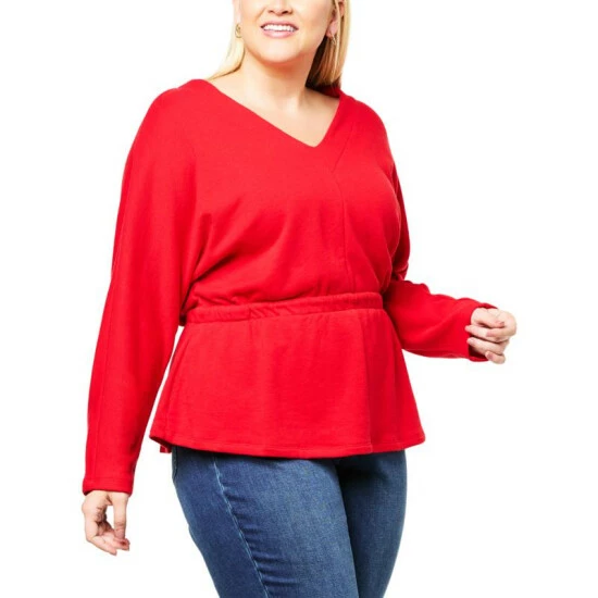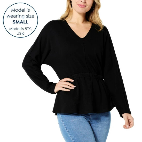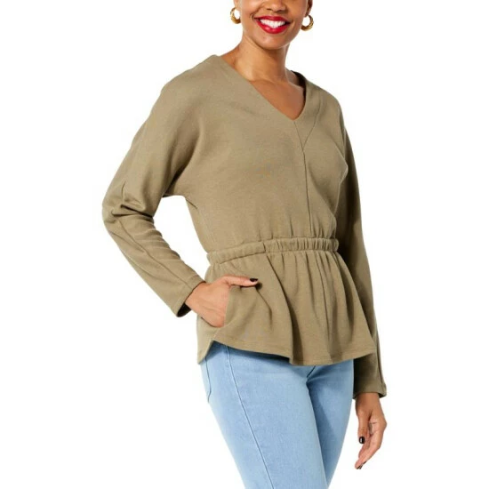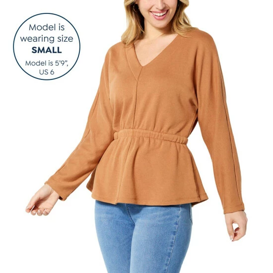 New 😀 DG2 By Diane Gilman DG2 Peplum Dolman Sweatshirt Camel ✨