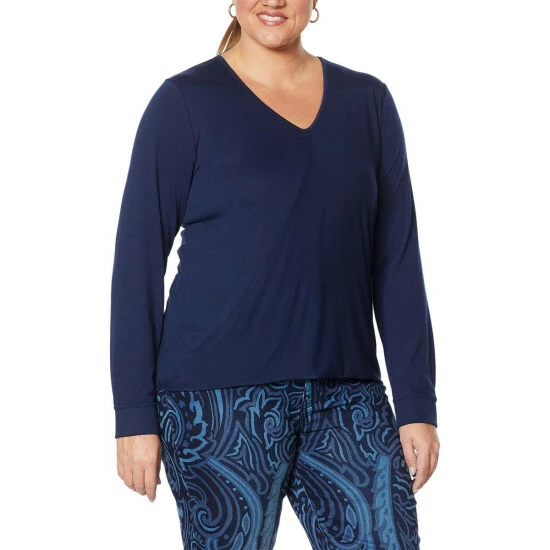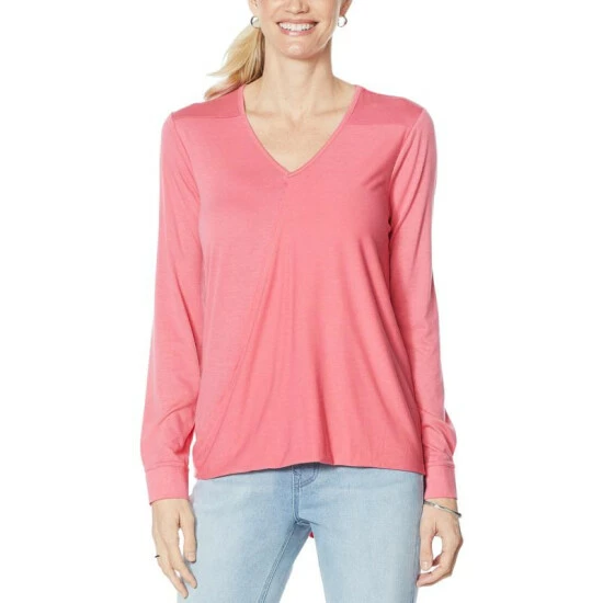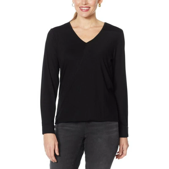 DG2 by Diane Gilman Drape Front V-Neck Hi-Low Top