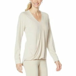 | Style: | Pullover with crossover front abd bottom draping |