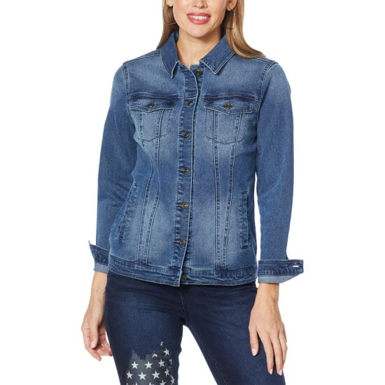 DG2 by Diane GilmanEagle Embroidered Classic StretchDenim Jacket