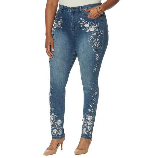 DG2 by Diane Gilman Embellished Classic Stretch Denim Legacy Skinny Jean