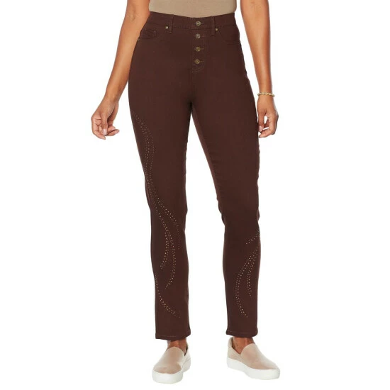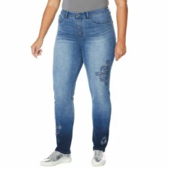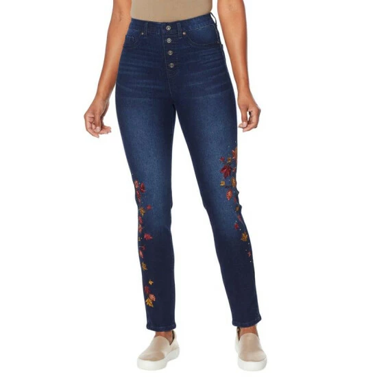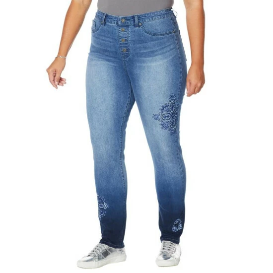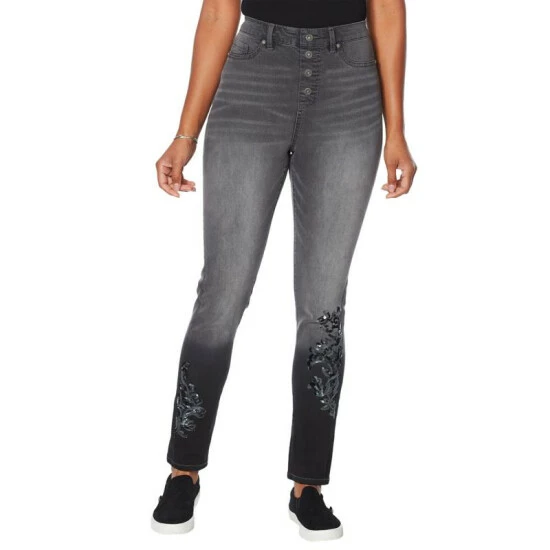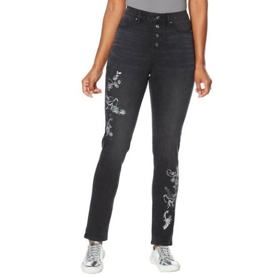 DG2 by Diane Gilman Embroidered Exposed Button Pull-On Jegging
