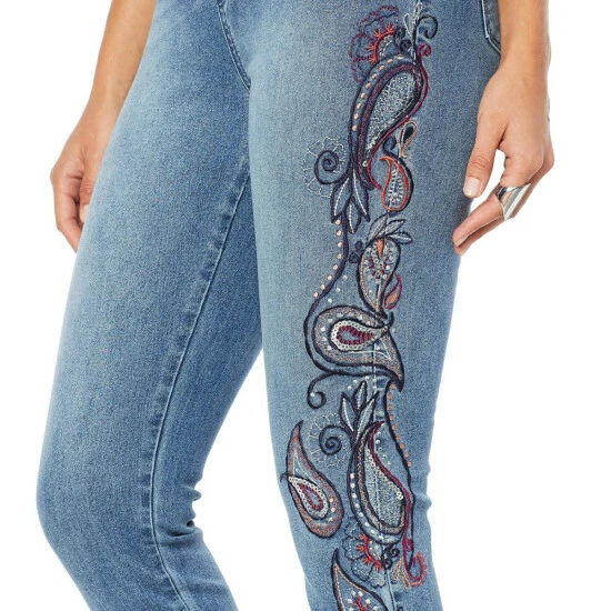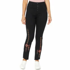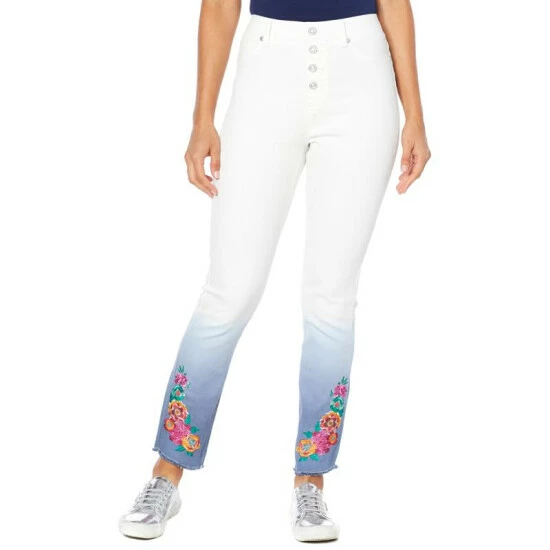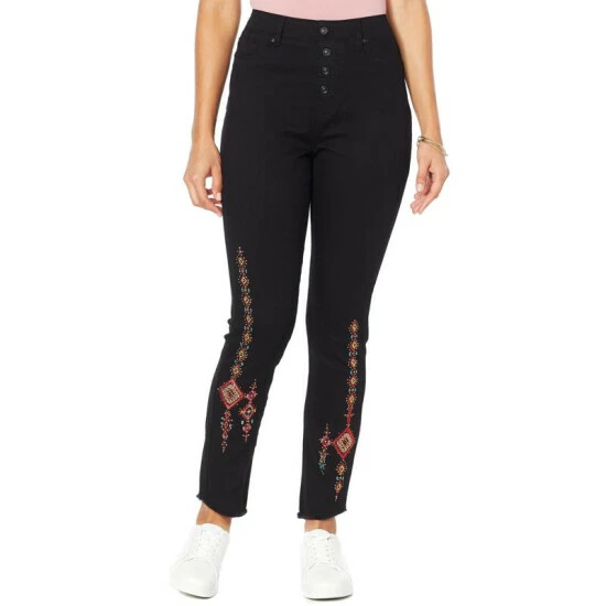 DG2 by Diane Gilman Embroidered Pull-On Exposed Button Jean
