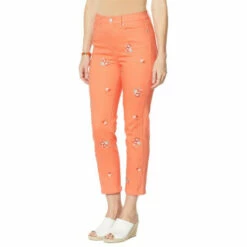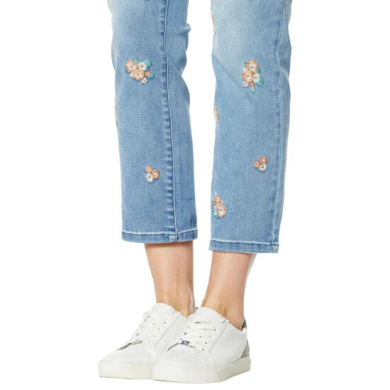 Pops of floral embroidery adorn this cropped jean, making it the perfect pair for transitioning into spring and summer.