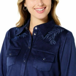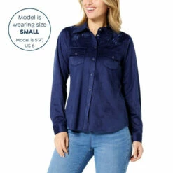 DG2 by Diane Gilman Faux Suede Novelty Embellished Cowgirl Shirt