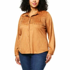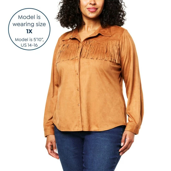 You don’t need to be from the wild, wild west to appreciate the Western-inspired style of this embellished faux suede top from Diane Gilman.