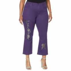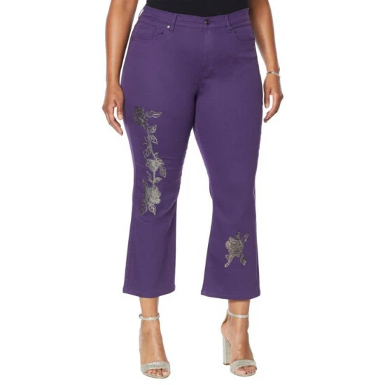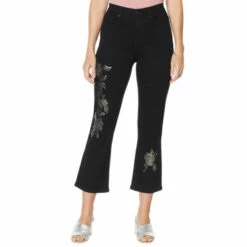 DG2 by Diane Gilman Floral Sequin Cropped Boot-Cut Jean