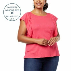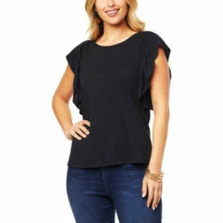 Dramatic flutter, cap sleevesdress up this casual slub knit tee so it can pull double duty for any desk-to-dinner look.
