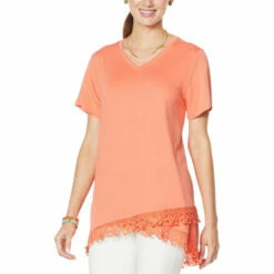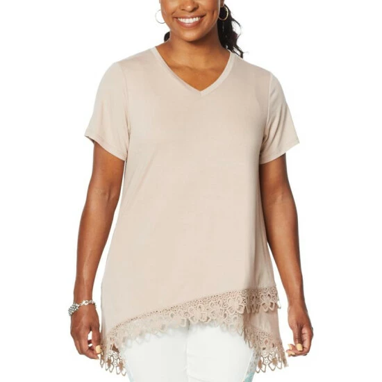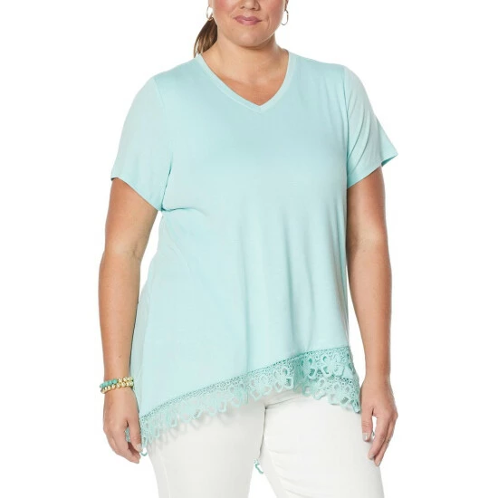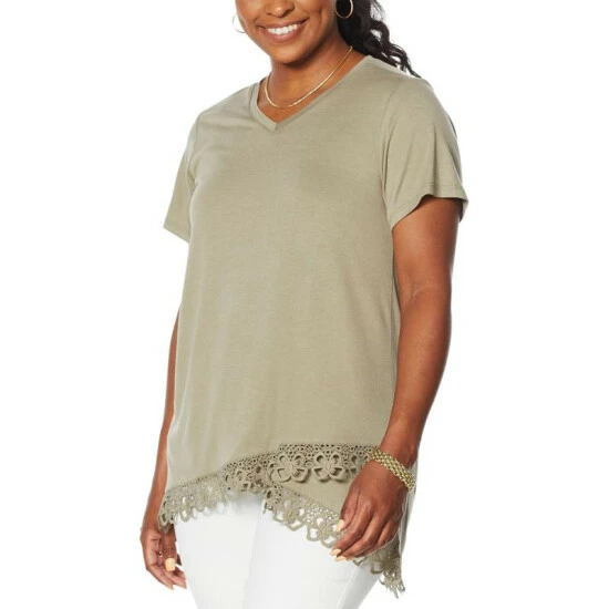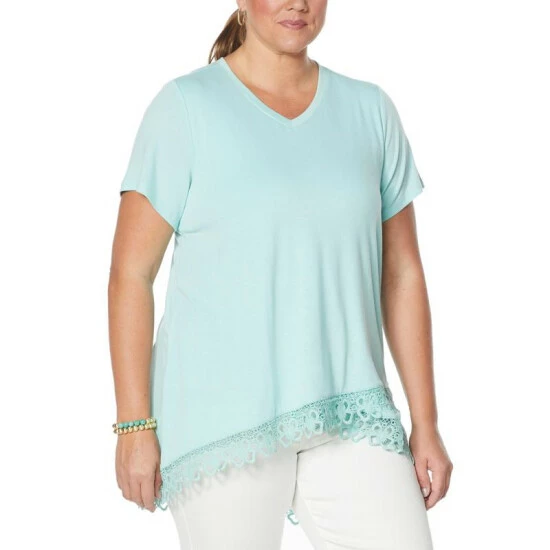 DG2 by Diane GilmanHi-Low Lace Hem Tee