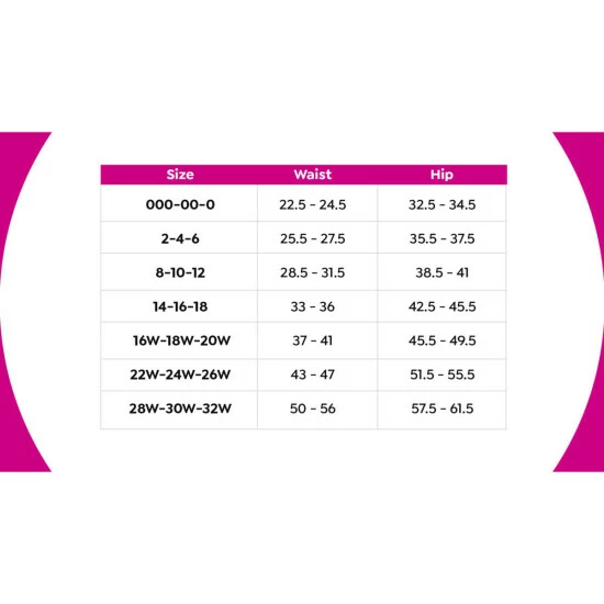 | Size Choices: | 000-00-0, 2-4-6, 8-10-12, 14-16-18, 16W-18W-20W, 22W-24W-26W, 28W-30W-32W (Average, Petite or Tall) |