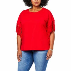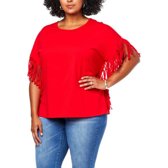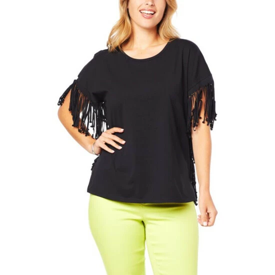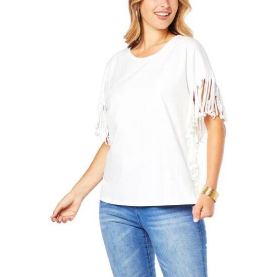 DG2 by Diane GilmanJersey Knit Fringe Side Tee