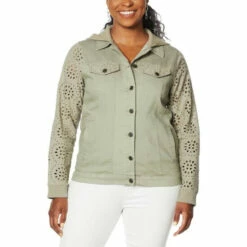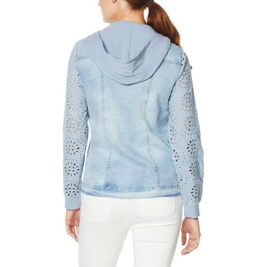 DG2 by Diane Gilman Lace-Sleeve Hooded Denim Jacket