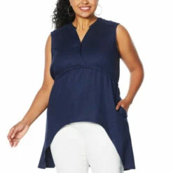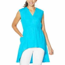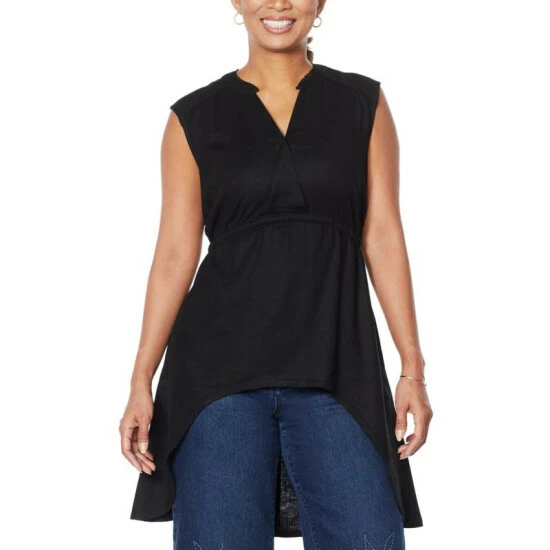 DG2 by Diane Gilman Linen-Blend Sleeveless Hi-Low Tunic