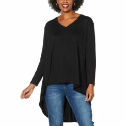 A dramatic hemline transforms this classic pullover into a statement-making look you’ll love to wear day-in and day-out.