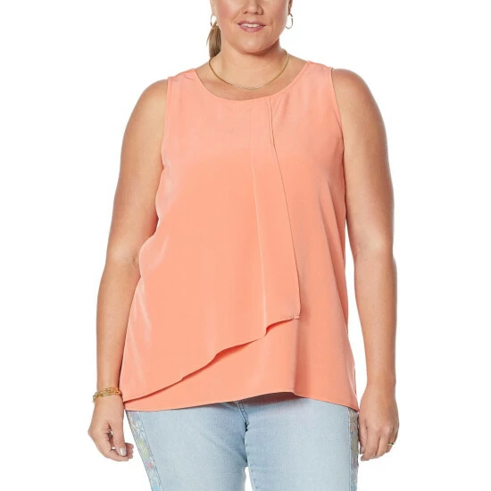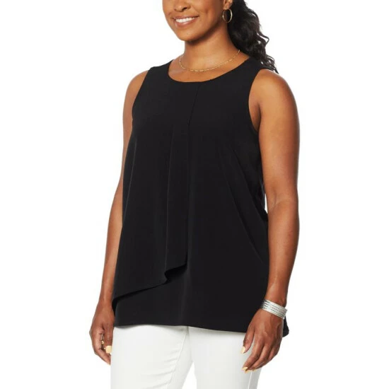DG2 by Diane Gilman Mixed Media Layered Drape Front Tank