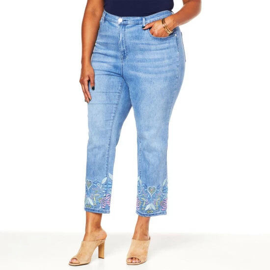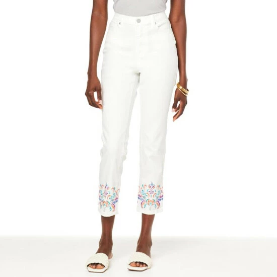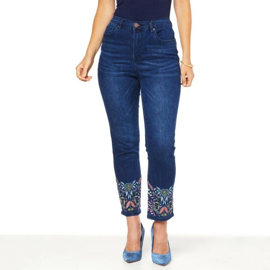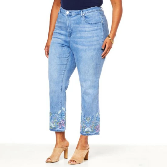 DG2 by Diane Gilman New Classic Stretch Denim Embroidered Crop Jean