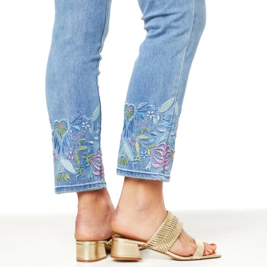 Colorfulembroideryadds afun, spring and summertimelook to these classic, straight-leg crop jeansfrom Diane Gilman.