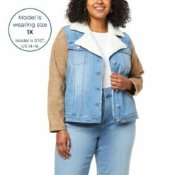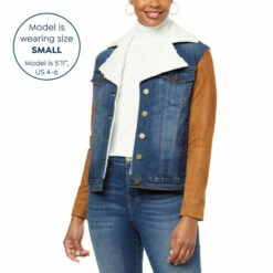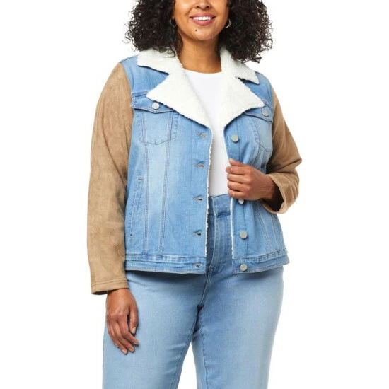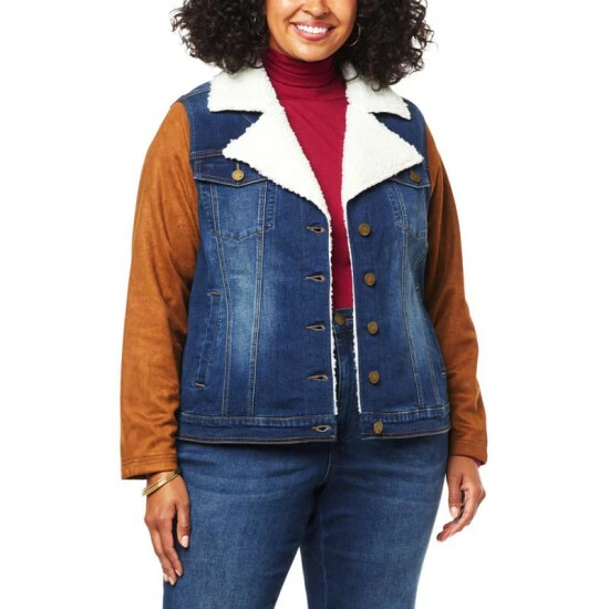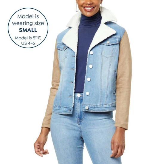 Diane has revamped herclassic jean jacketfor the cold-weatherseasonwith chic, faux Sherpa fleecedetailand faux suede sleeves.