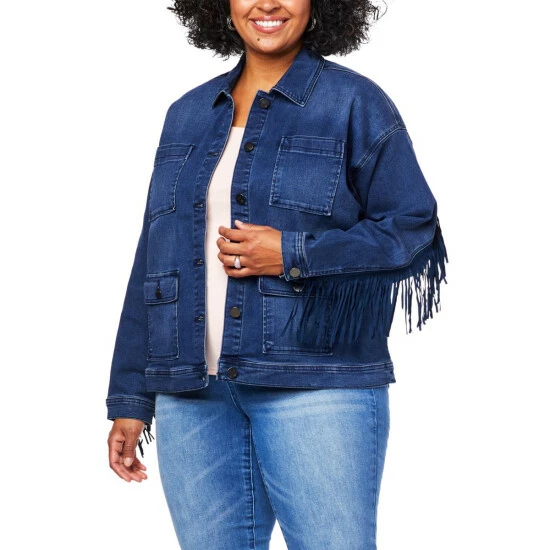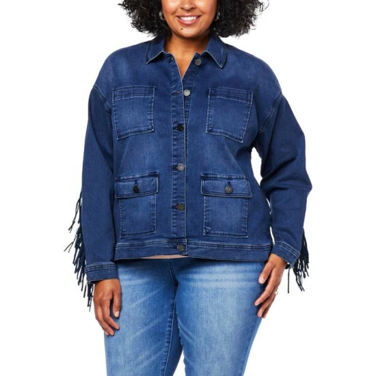 DG2 by Diane Gilman New Classic Stretch Fringe Back Denim Jacket