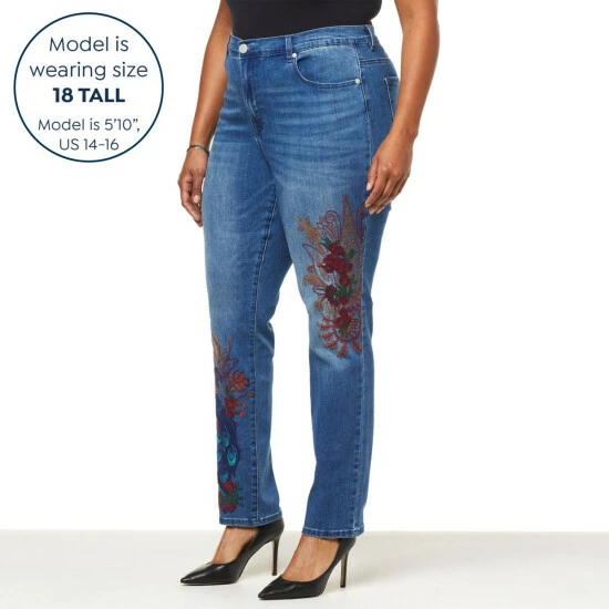Curvy, cute and comfortably stretchy, this stylish essential is Diane’s Greatest Hit. The new classic stretch denim with embellisheddetail and a slim, full-length leghas a medium weight with great stretch and recovery for a lean and leggy look.