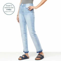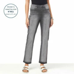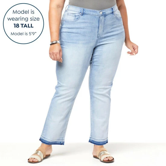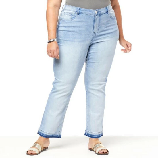 A chic shadow wash and released, frayed hem give a well-worn look to these signature straight-leg ankle jeans from Diane Gilman. With a flattering at-waist rise, they’re a seasonless staple you simply can’t live without.