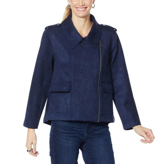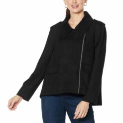DG2 by Diane Gilman Oversized Brushed Knit Moto Jacket