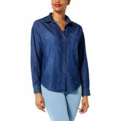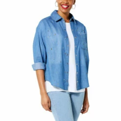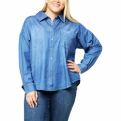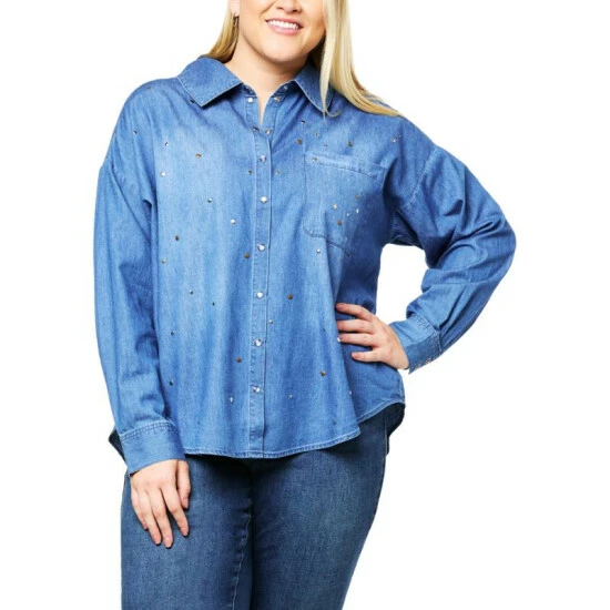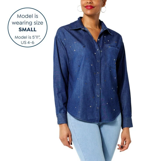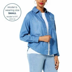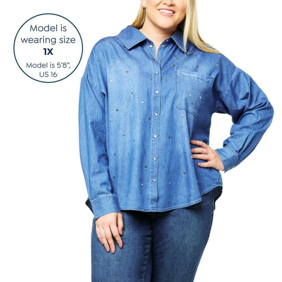 DG2 by Diane Gilman Oversized Embellished Boyfriend Shirt