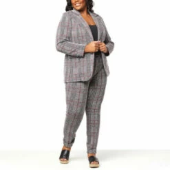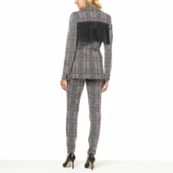 DG2 by Diane Gilman Plaid Knit Jacquard Fringe Back Blazer