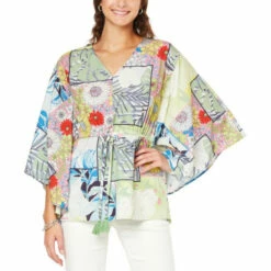 DG2 by Diane Gilman Printed Challis Tie Waist Poncho