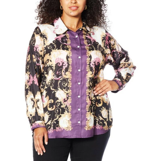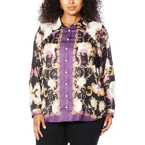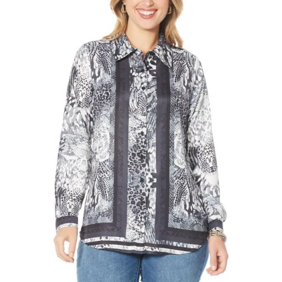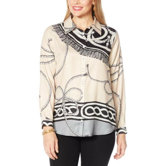 DG2 by Diane Gilman Printed Charmeuse Collared Shirt
