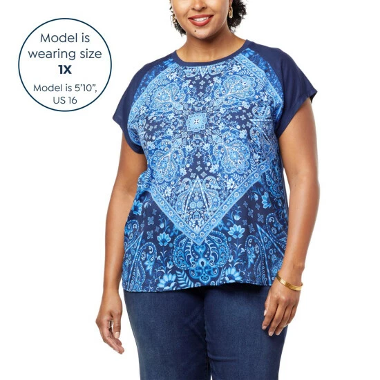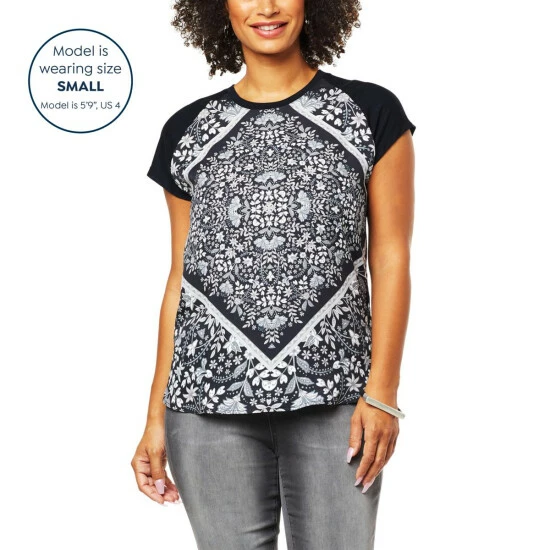 DG2 by Diane Gilman Printed-Front Combo Tee