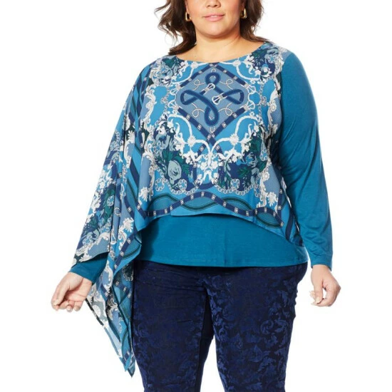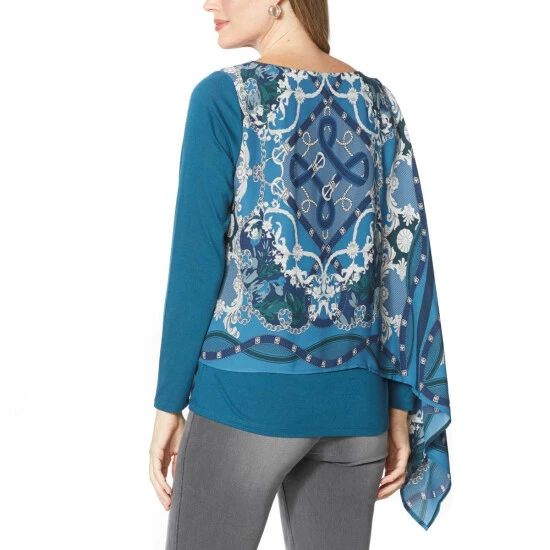 DG2 by Diane Gilman Printed Overlay Long-Sleeve Top