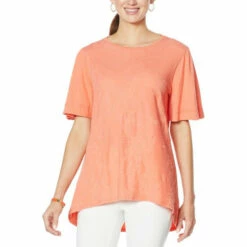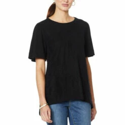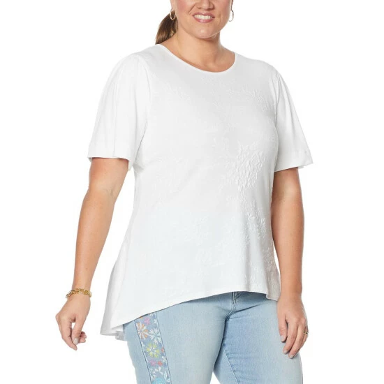 A fashionabletwist in the sleeves adds a pretty pouf — just enough to create an interesting silhouette that setsthis top apart from all your other classic everydaytees.