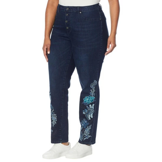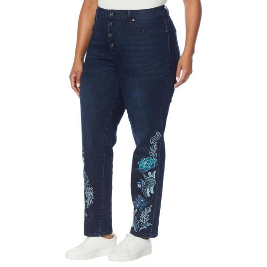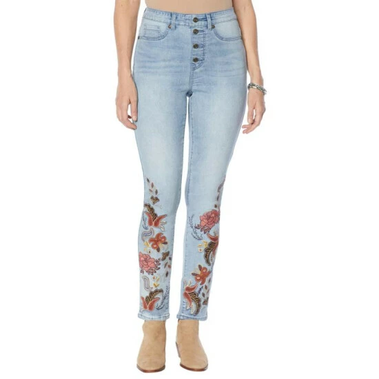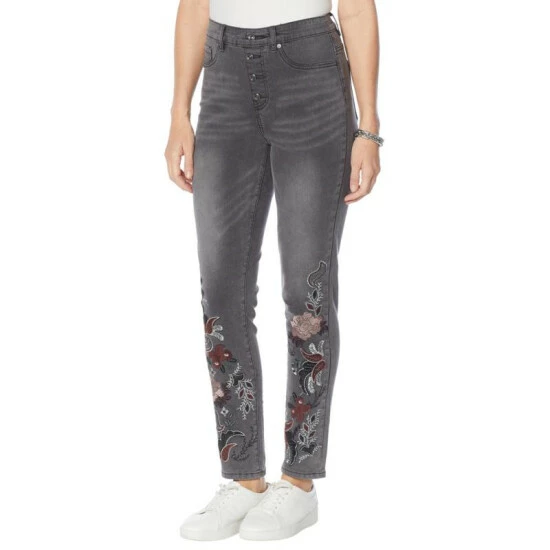 DG2 by Diane Gilman Classic Stretch Pull-On Floral Appliqué Skinny Jean