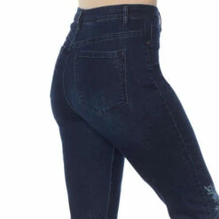 Embroidered floral appliqué rejuvenates your denim collection with the easy pull-on design and figure-flattering skinny jean silhouette.