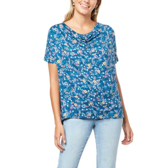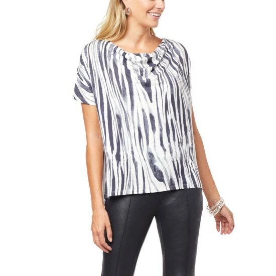 DG2 by Diane Gilman Reversible Print Knit Boyfriend Tee
