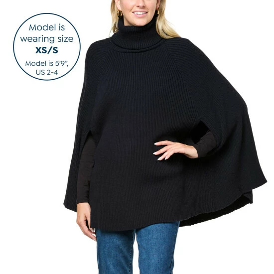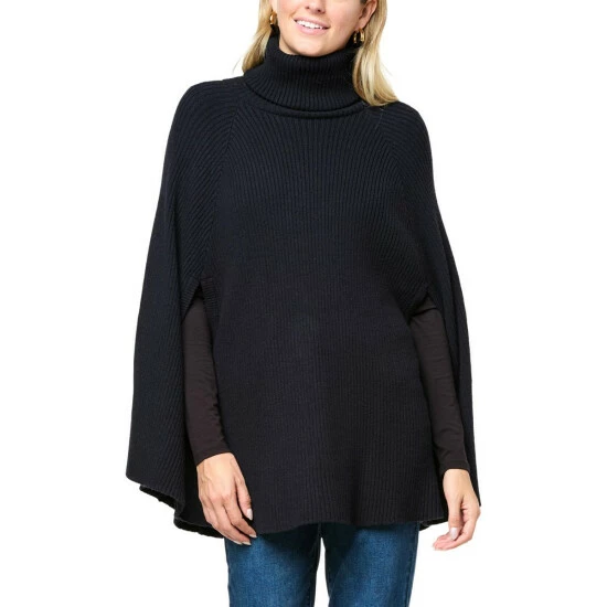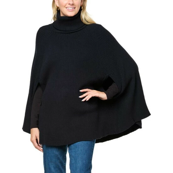 DG2 by Diane Gilman Ribbed Knit Turtleneck Sweater Poncho
