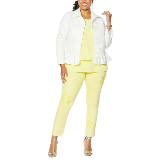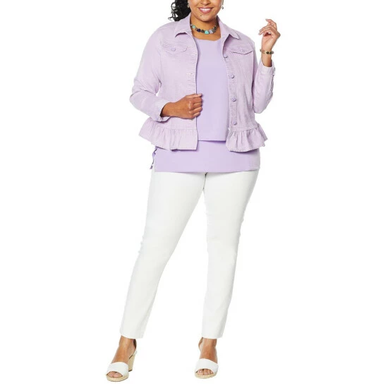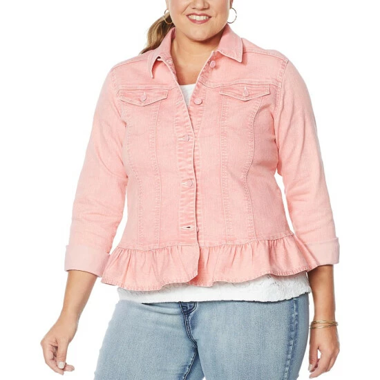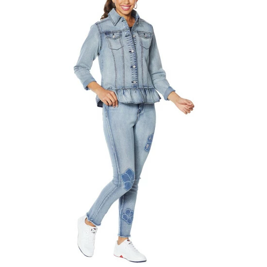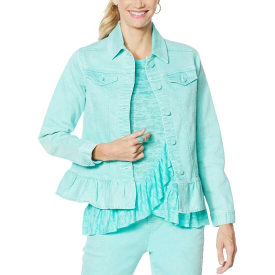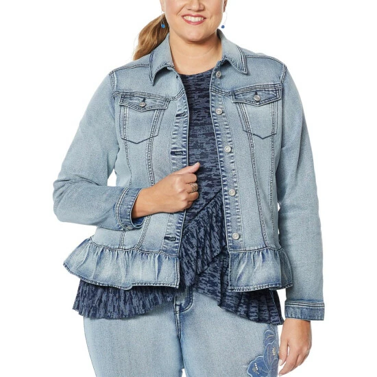 DG2 by Diane Ruffled-Hem Classic Stretch Denim Jacket