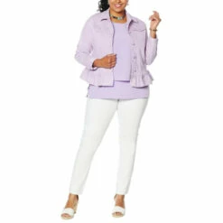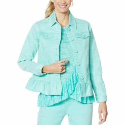 A ruffled hem and unique sorbet wash add a feminine finish to this classic jean jacket. Layer it over a sundress or shorts-and-tee for a new take on the season’s go-to favorites.