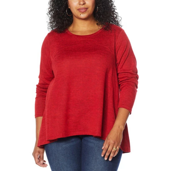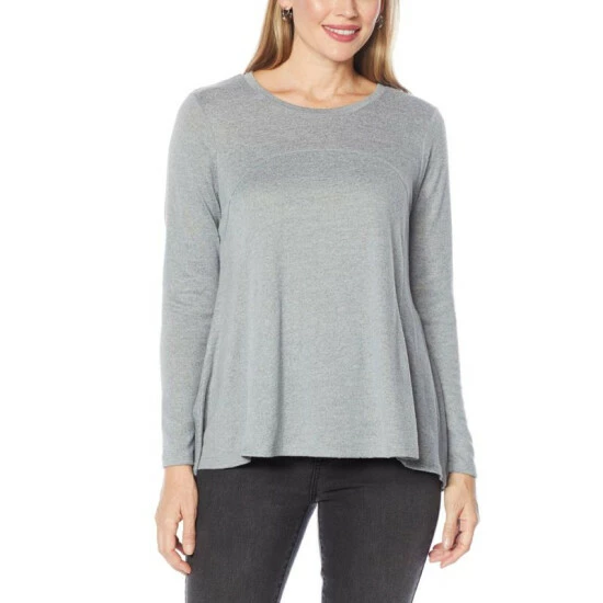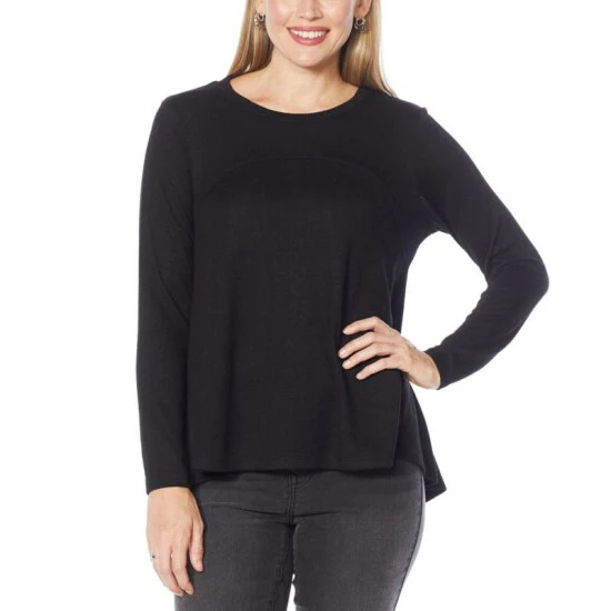 DG2 by Diane Gilman Seamed Brushed Sweater Knit Swing-Hem Top