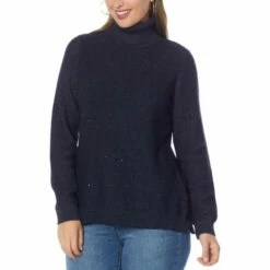 Sparkling sequin accents and soft, tri-blend sweaterknit shapes this cool-weather essential in a long-sleeve turtleneck style that’s soon to become your fall BFF. Whether you pair it with an office-ready pencil skirt or weekend-chic denim, get ready to get irresistibly cozy.
