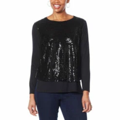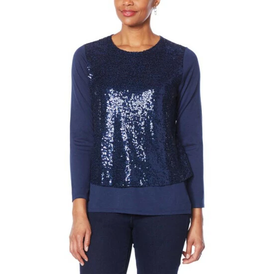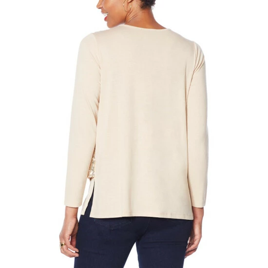 DG2 by Diane Gilman Sequined Front Long-Sleeve Easy Top