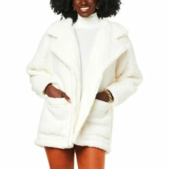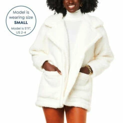 This modern-minimalist button-frontcoat is done in plush Sherpa for a layer that’s as comfy as it is chic and pulled together.