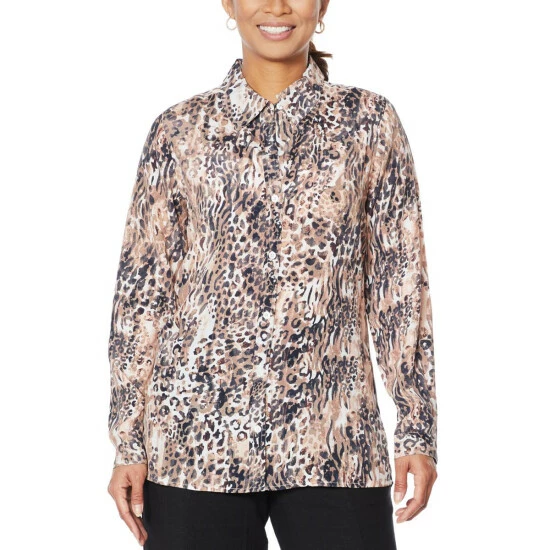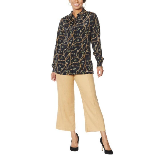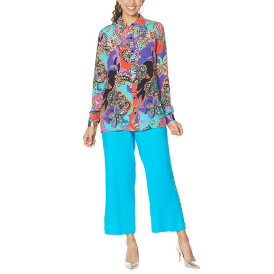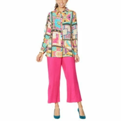 Prints charming! Freshen up every pair of bottoms in your wardrobe with our printed silk-blend shirt from Diane Gilman.